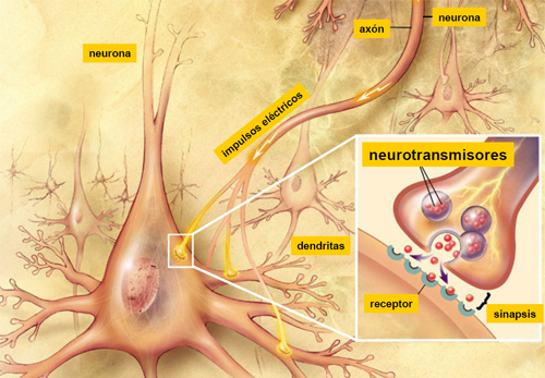 Los neurotransmisores son sustancias químicas producidas por las neuronas durante la sinapsis, se difunden atreves del surco sináptico y es capaz de alterar el funcionamiento de otra célula de manera breve o durable, reacciones como contracción, secreción, excitación o inhibición. Por medio de la ocupación de receptores específicos y por la activación de mecanismos iónicos y/o metabólicos.
